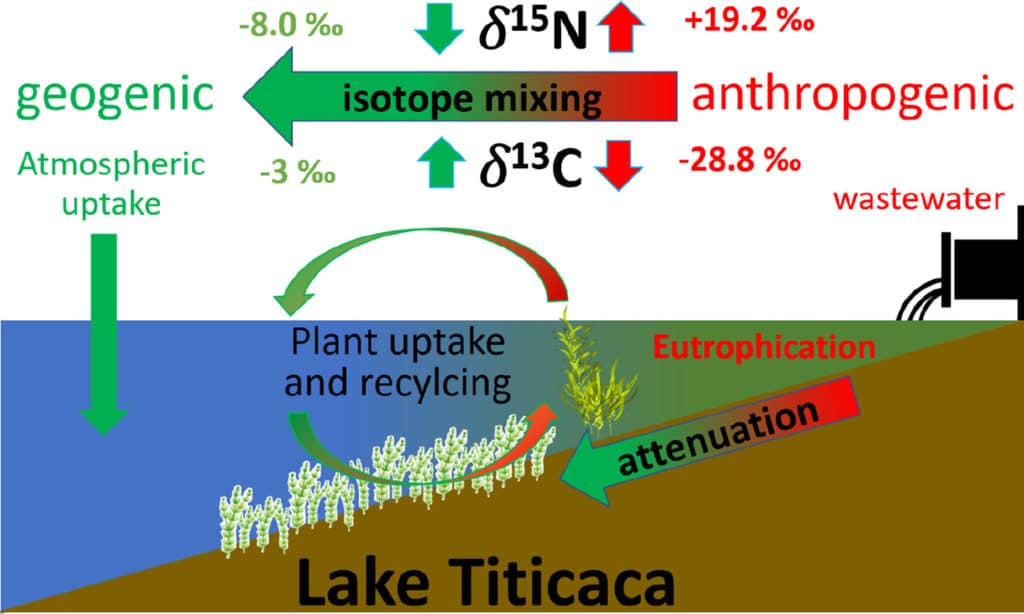 C and N stable isotopes were measured in four compartments of Lake Titicaca.